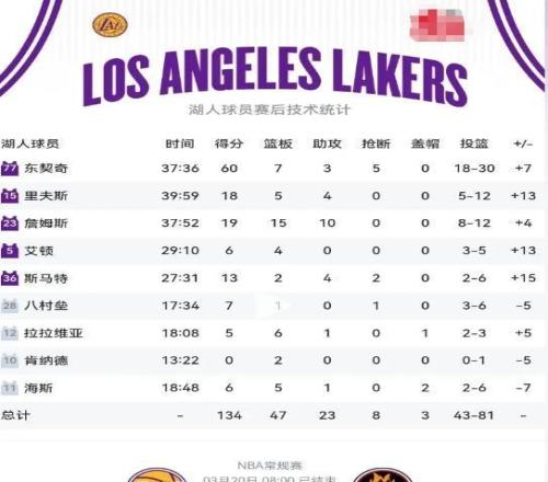 正是二人默契配合、相互成就,才让湖人从悬崖边缘强势回身,赢下这场关乎士气与排名的关键战役,也为后续冲击更高目标注入坚实信心。