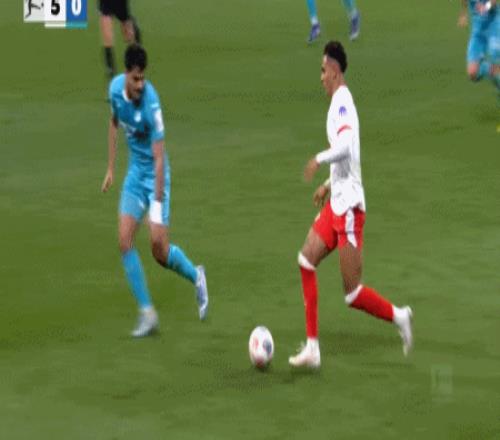 第44分钟,迪奥曼德低传后点,格鲁达推射破门完成双响,莱比锡4-0