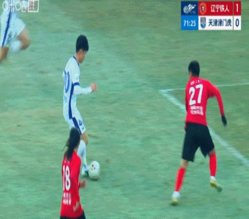 第77分钟,邦本宜裕传中,安以恩原地摆腿兜射破门,辽宁铁人2-0!