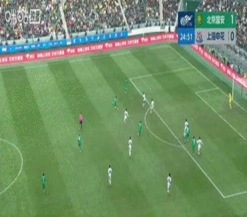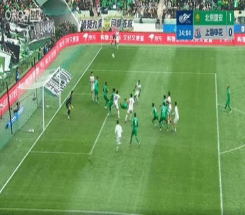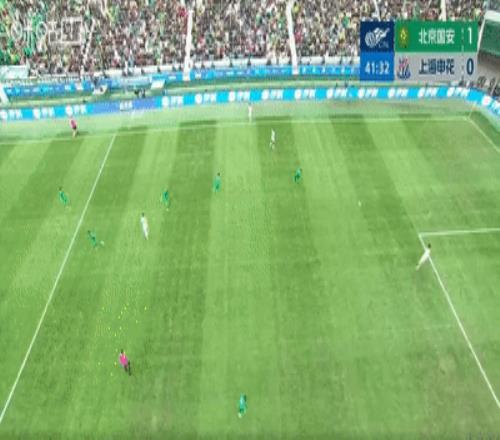 上半场比赛结束,北京国安暂时主场1-0领先上海申花。
